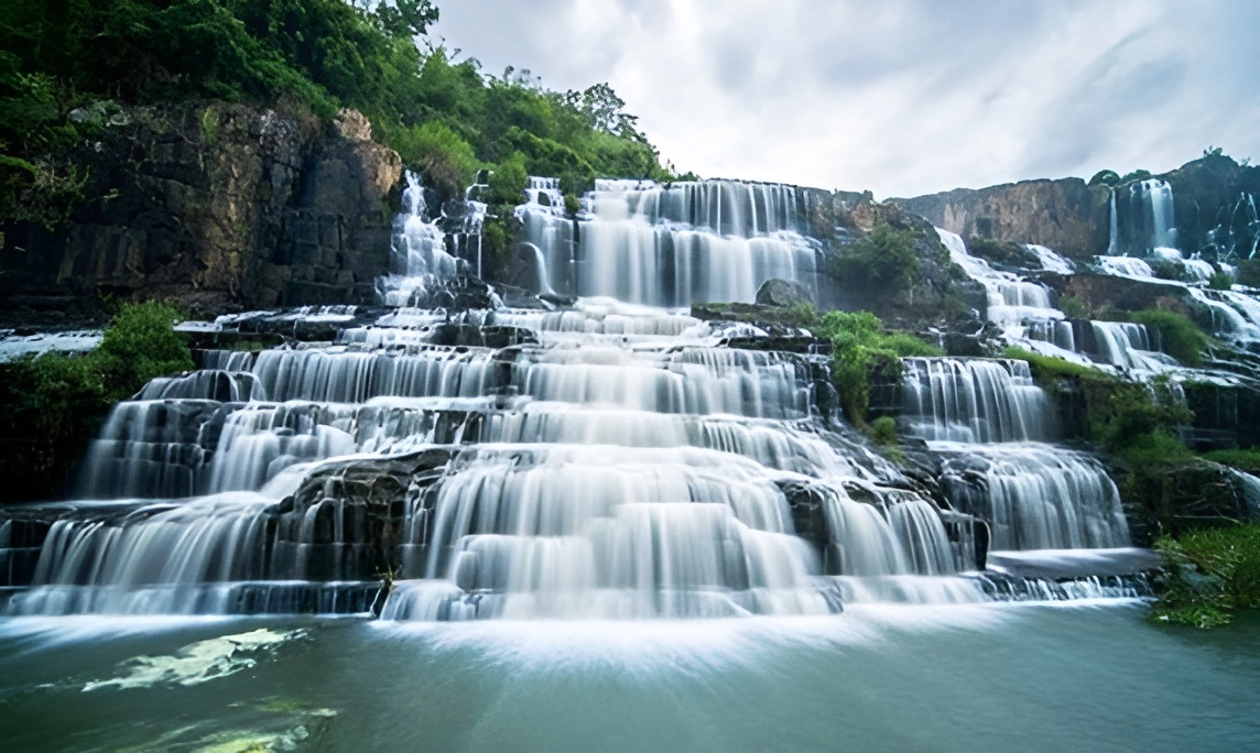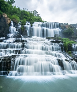 Tiếp tục hành trình, đến với Thành phố hoa Đà Lạt. Đến Đức Trọng, đoàn dừng chân tham quan Thác Pongour – được mệnh danh là “Nam Thiên Đệ Nhất Thác” của núi rừng Tây Nguyên. Được tạo hóa ban tặng vẻ đẹp hùng vĩ, hoang sơ với dòng thác chảy qua hệ thống đá bậc thang 7 tầng, bao quanh là khu rừng nguyên sinh với hệ sinh thái động thực vật phong phú.